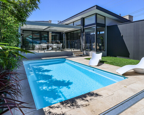 Landscaping around this pool is best kept simple to compliment the stylish design.